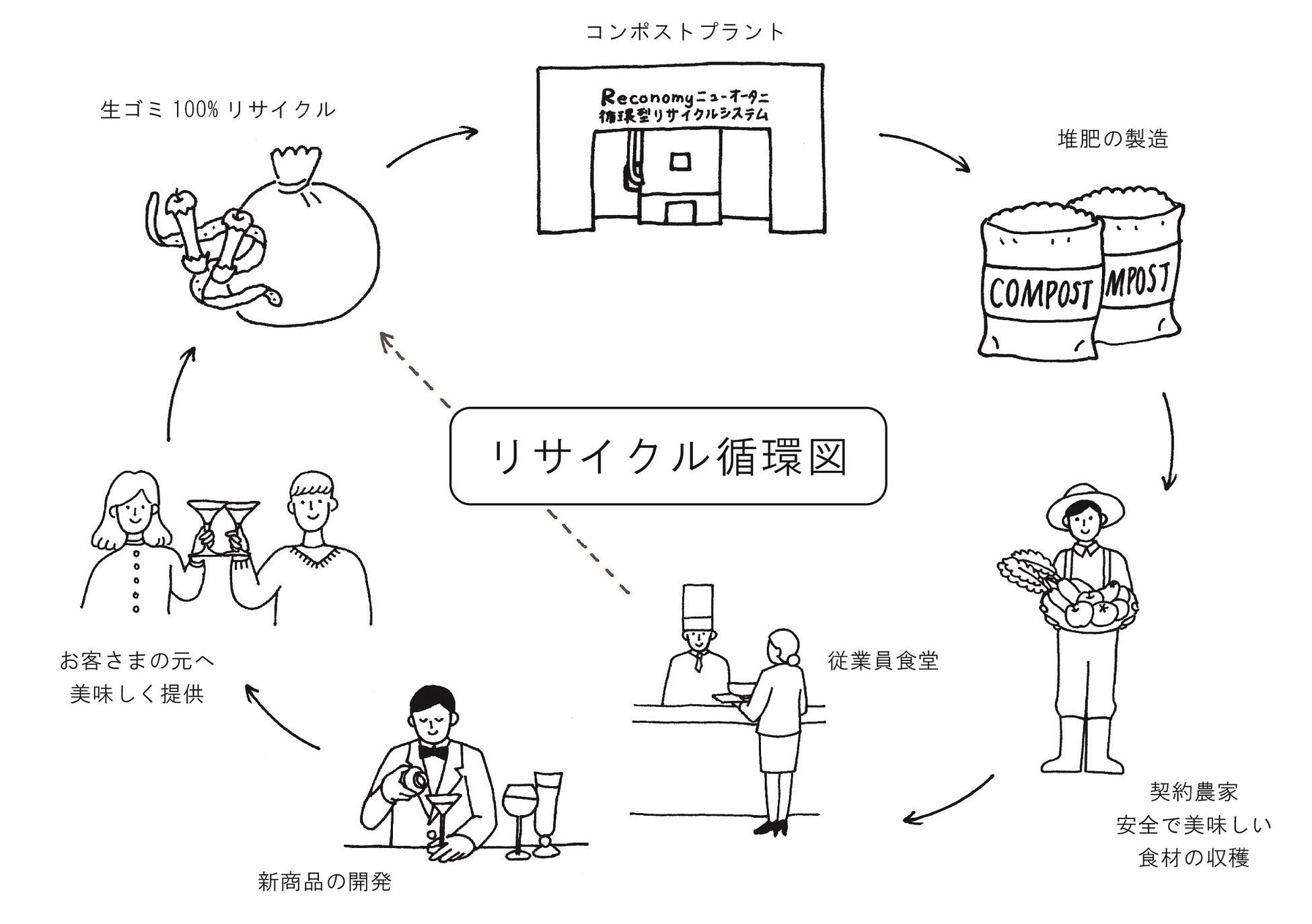 フードロスを実現する「コンポストプラント」を1999年に導入。1日約5トンの生ごみを有機堆肥へと変えています。その堆肥は契約農家が買取り、育った野菜などは従業員食堂や一部のレストランで提供されるほか、日本庭園やレッドローズガーデンを整備する肥料としても再利用しています。