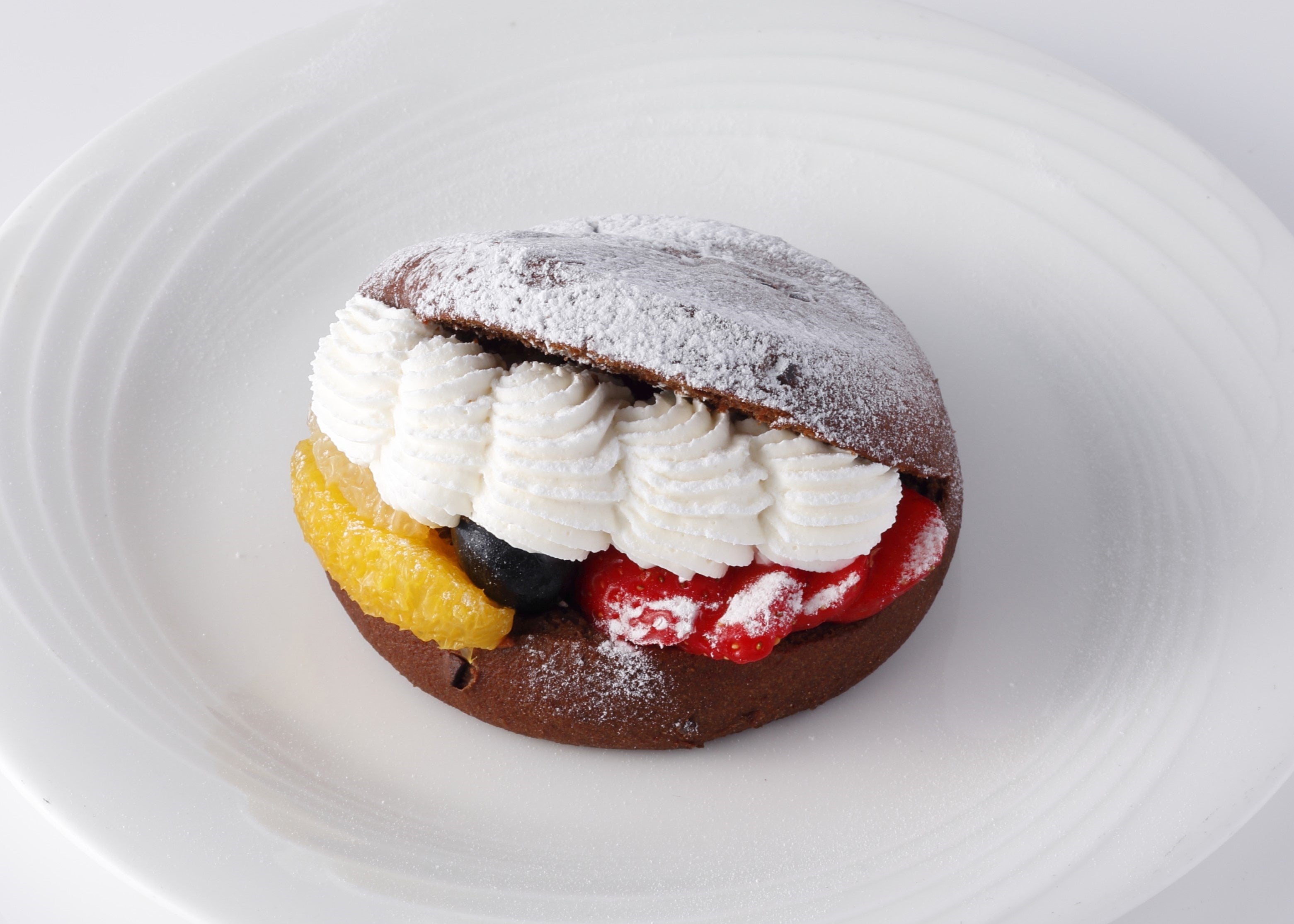 デザートには、イタリアンスイーツ「マリトッツォ」をイメージした見た目も華やかなフルーツサンドをどうぞ。黄えんどう豆で作られた豆粉パン「ZENB BREAD(ゼンブブレッド)」にたっぷりのフルーツと「豆乳ホイップ」を挟んだヴィーガンサンドに仕上げました。ボリューム満点、また学びにも繋がる特別なランチプレートで「未来の食」を体験しませんか。