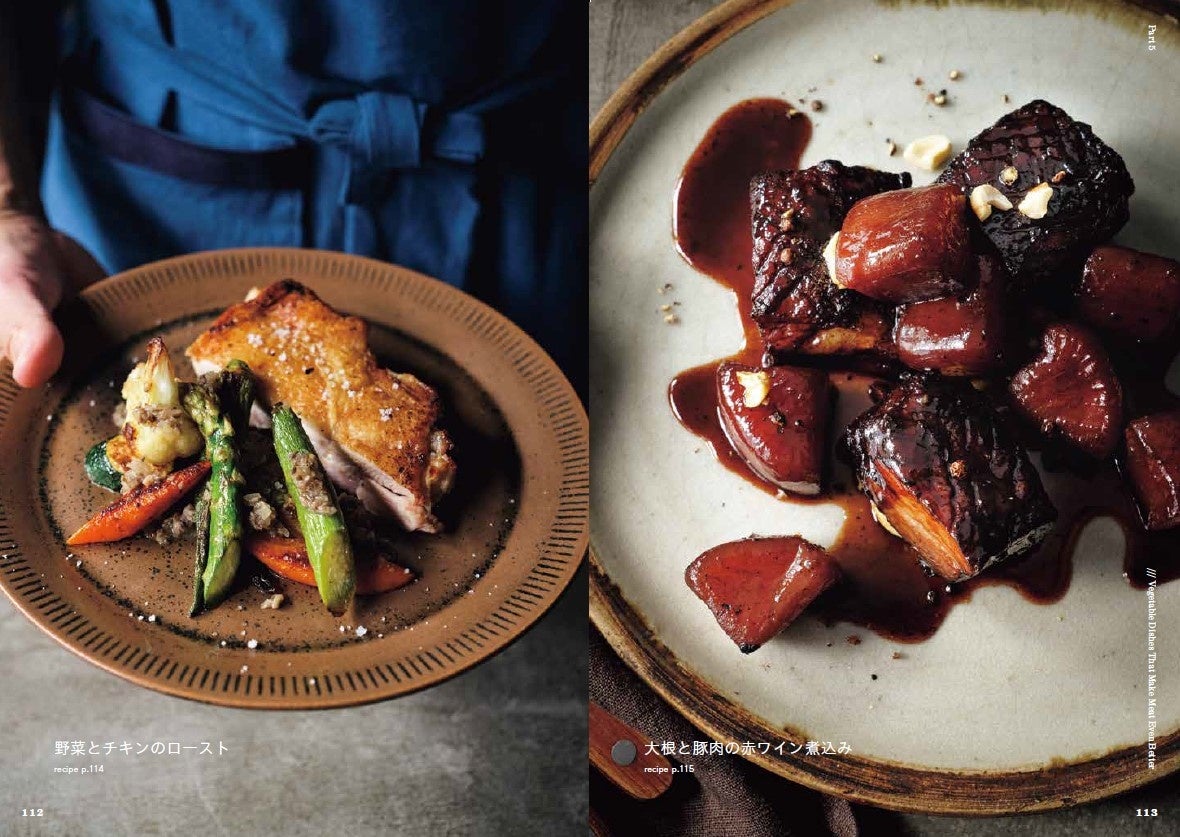 本書で紹介するのは、これまで食べたことがないような主役級のごちそう野菜レシピです。メインディッシュになる食べごたえとインパクトがある「ステーキ」、野菜の味わいを丸ごと堪能できる「煮込み」や「スープ」、新感覚なおいしさに出会える「パスタ」や「リゾット」など。野菜=副菜というイメージを払拭するような、ごちそう感あふれるレシピが満載です。