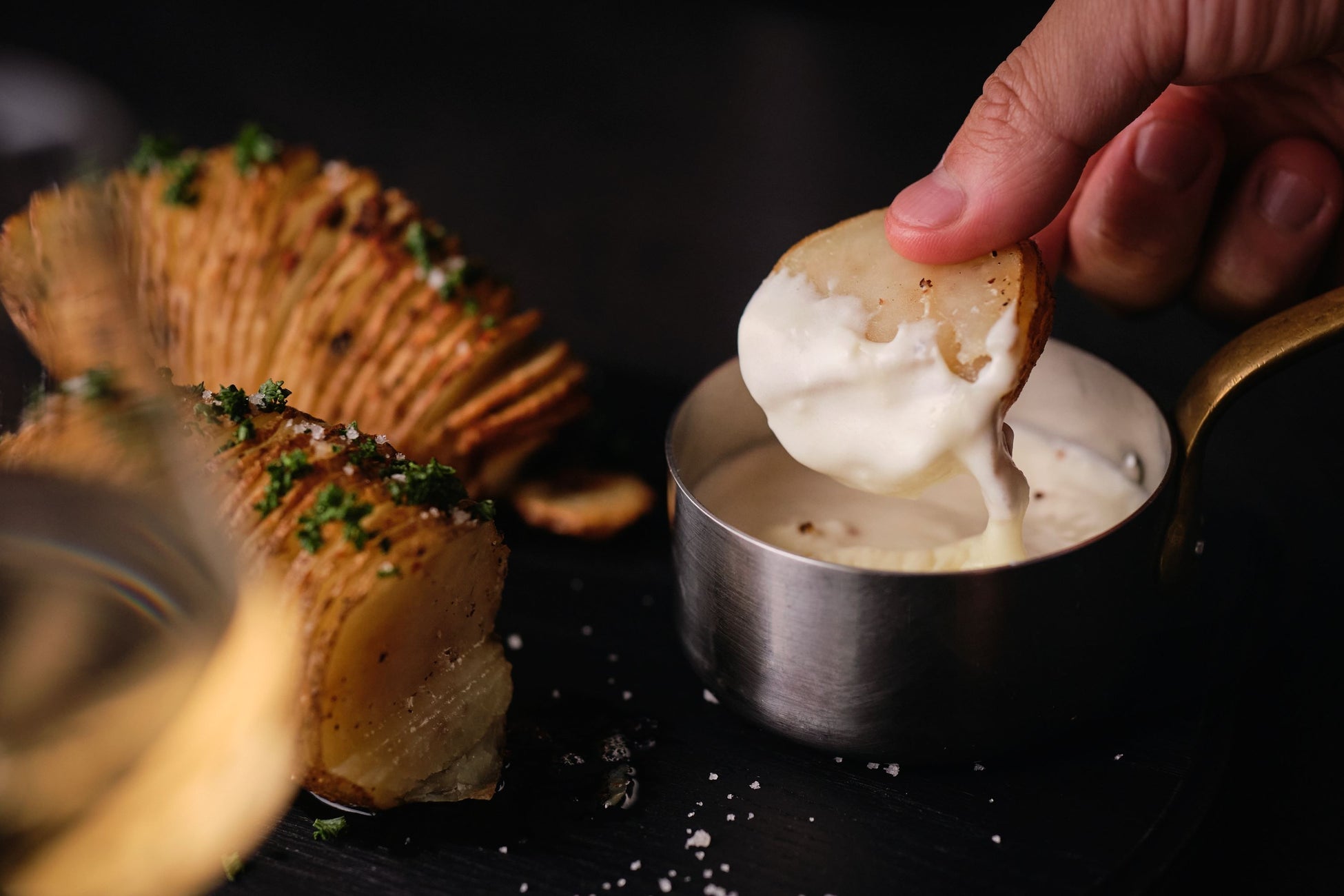 アコーディオンのような華やかな見た目が印象的な北欧の国民食。ポテトソースを添えれば、いも感をぜいたくに楽しめる最強のおつまみに。