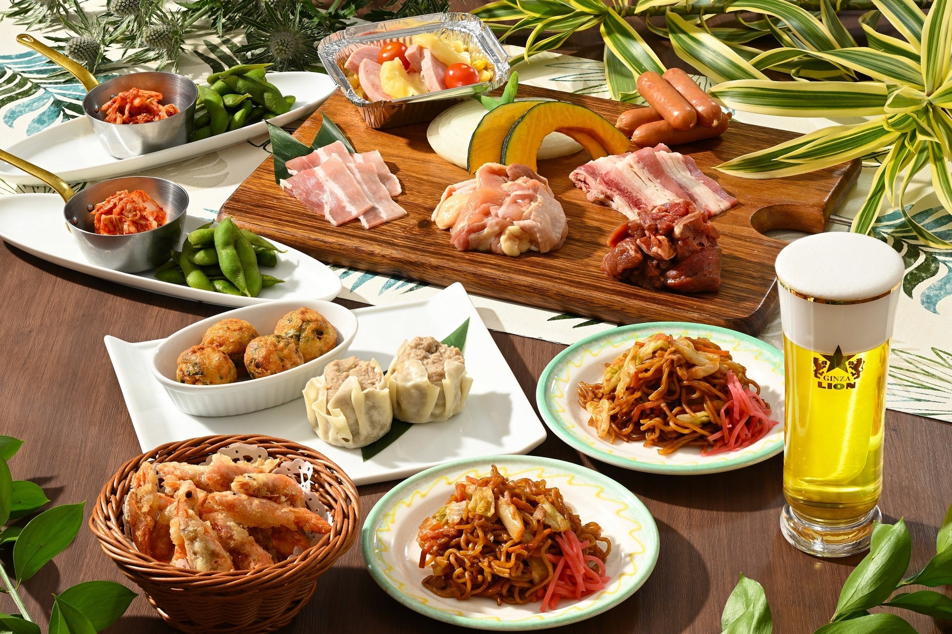 数種類のお肉と野菜が楽しめる、人気のバーベキュー食べ放題と食べ飲み放題120分のプランです。