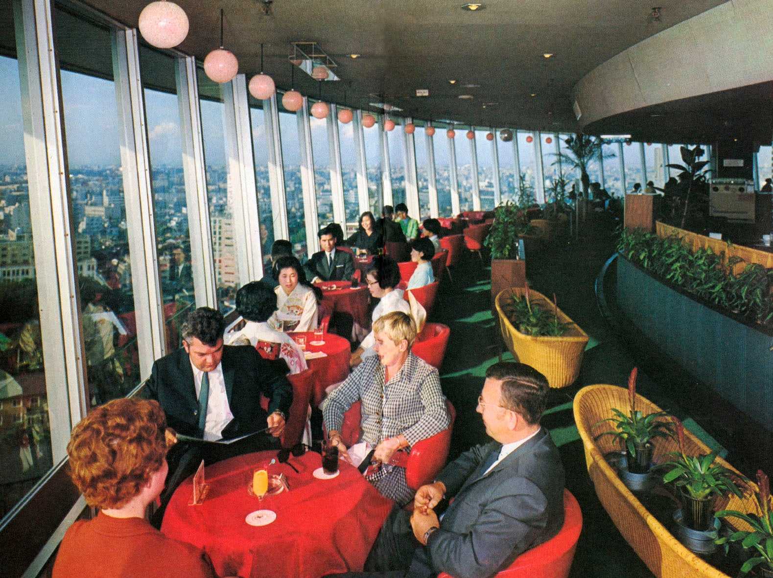 『東京オリンピックのために世界中から訪れるお客さまに、日本が誇る富士山を見せたい』。創業者・大谷米太郎の想いから、戦艦大和の主砲を回転させる技術を取り入れ、回転展望ラウンジとしてオープン。1964年当時の訪日外国人客数は35万人ほどで、前年の22万人から大きく伸長しており、「ブルースカイラウンジ」は、戦後の日本の観光産業の黎明期に「東京の新名所」として親しまれました。その後、店名や業態を変えながらも多くの人々に愛され、変わらぬ富士山の絶景とともに、幾多の思い出や名場面の舞台になっています。