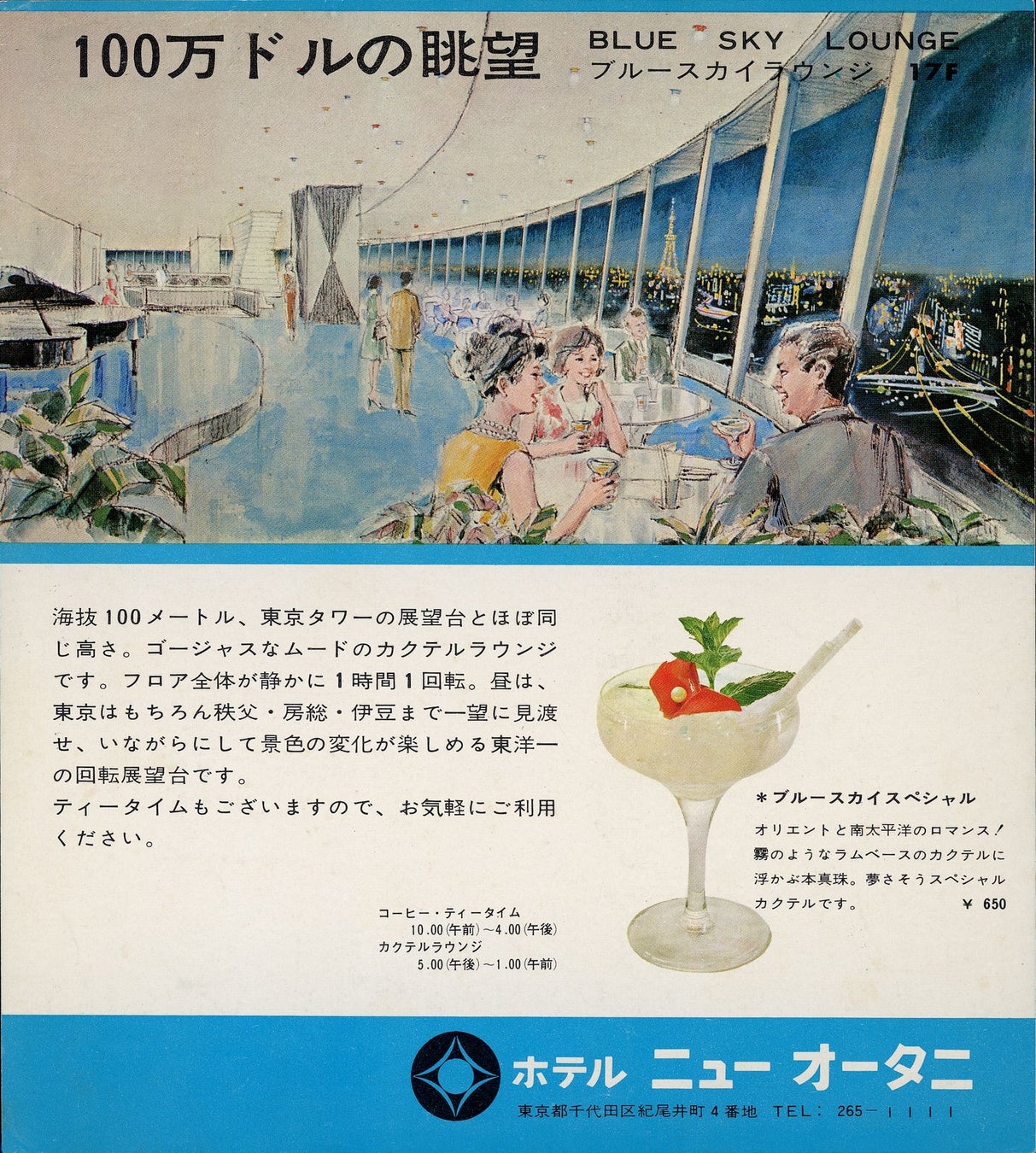 1964年、地上70m・17階建て、日本初の高層建築として開業したホテルニューオータニ。"東洋一"と称された巨大ホテルの最上階にオープンしたのが、現在の「VIEW & DINING THE SKY」の前身、「ブルースカイラウンジ」でした。