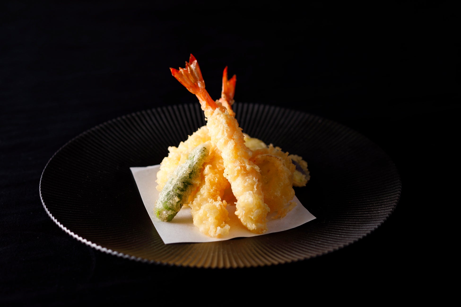 天ぷらコーナーでは揚げたてにこだわり、ヘルシーな「米油」を使用して、海老や旬野菜を丁寧にサクサクの食感に。食材の食感や旨みを最大限に引き立てます。