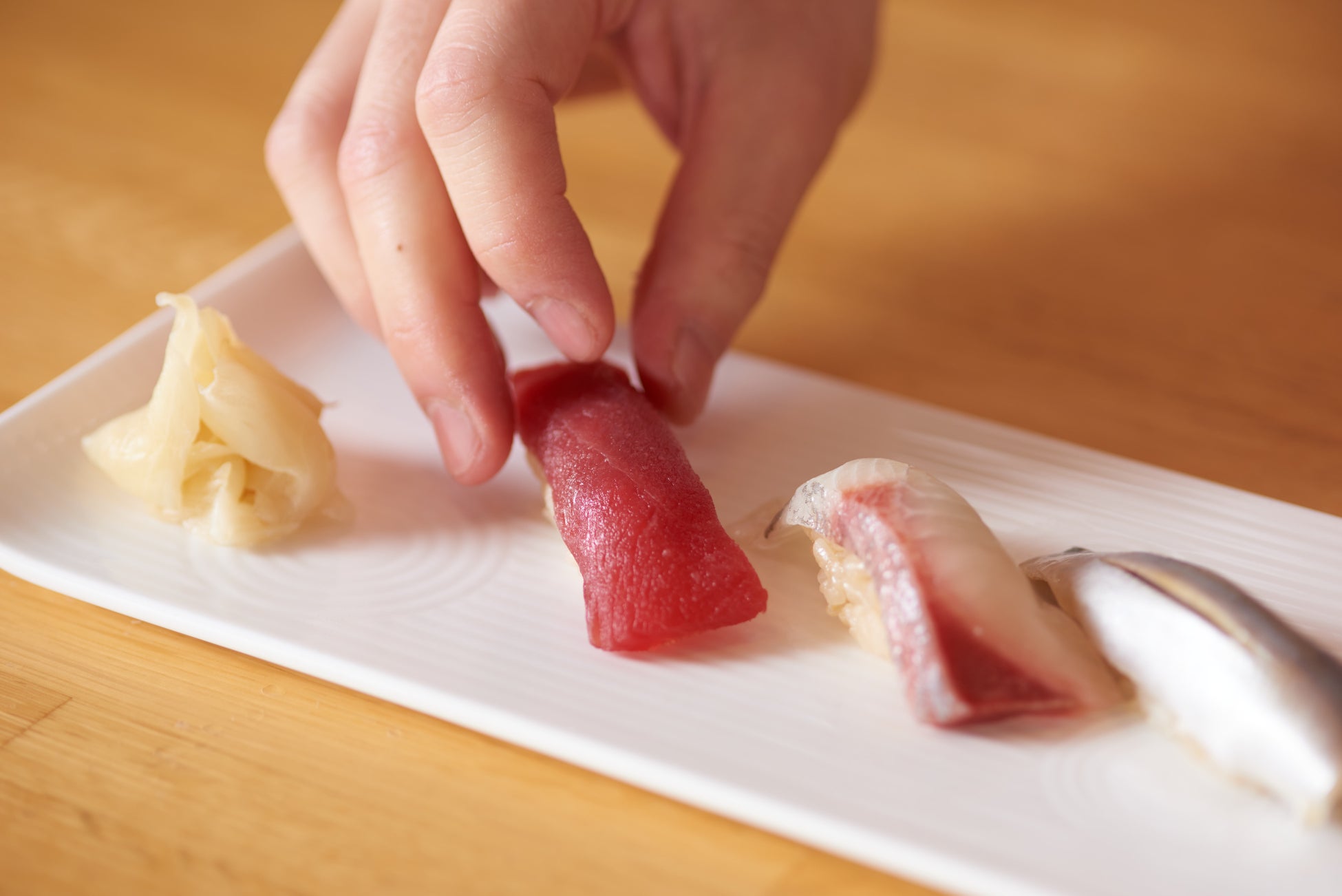 人気の寿司コーナーでは、お好みのネタを、職人が注文を受けてから目の前で握ってご提供。定番の赤身や白身をはじめとした旬の食材を、オリジナルで調合した、江戸前寿司伝統の赤酢を使用したシャリで握ります。