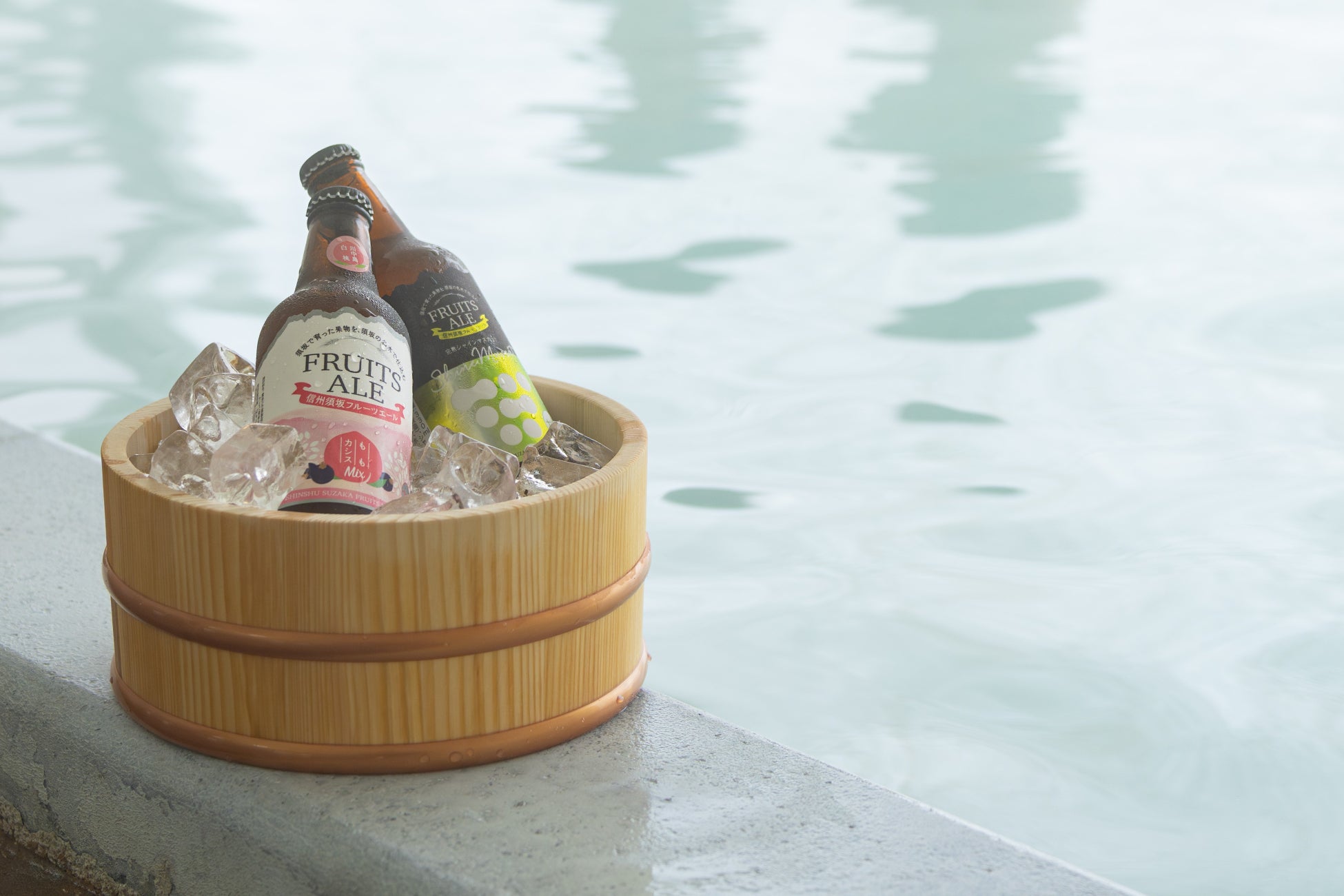 標高1,800m、通年マイカーで行ける温泉地として日本最高所に位置する万座温泉は、国内有数の硫黄含有量を誇る良質な泉質が魅力です。猛暑が話題になる昨今、日頃の暑さで蓄積された疲れをじんわり癒やしていただきたい。夏の温泉は嫌遠されがちですが湯温を「ぬる湯」(38℃程)に設定することで、じっくりと浸かることができる!さらに誰にも干渉されないプライベート空間で人目を気にせず、お風呂上がりには万座の冷涼な空気の中、さっぱりしていただこう!と企画しました。湯上がりには、隣接する須坂市が中心となり須坂産の果物振興を目的に開発された「信州須坂フルーツエール」をご用意いたします。ぬる湯の温泉にじっくり浸かり、お風呂上がりの涼感と、爽やかでキレのあるフルーツエールでのどを潤し、心身共にリフレッシュできる時間を提供いたします。