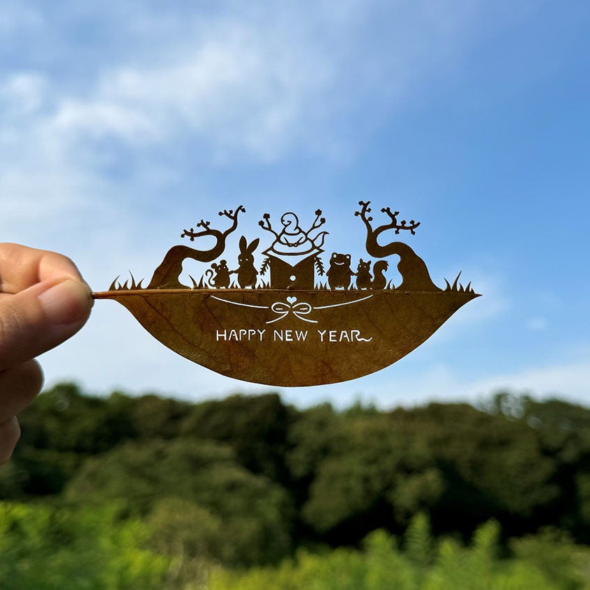 リト@葉っぱ切り絵 2025年干支リーフフォトアート