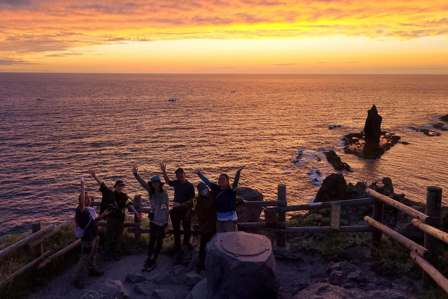 「神威岬灯台プレミアムナイトツアー」は、普段は立ち入りできない「夜の神威岬」を訪ねる特別な企画です。岬の突端近くに立つ神威岬灯台のレンズが点灯する瞬間と灯台内部の特別見学、燃えるように沈む夕陽、暗闇に輝く灯台と漁り火、満点の星空などの絶景を堪能することができます。