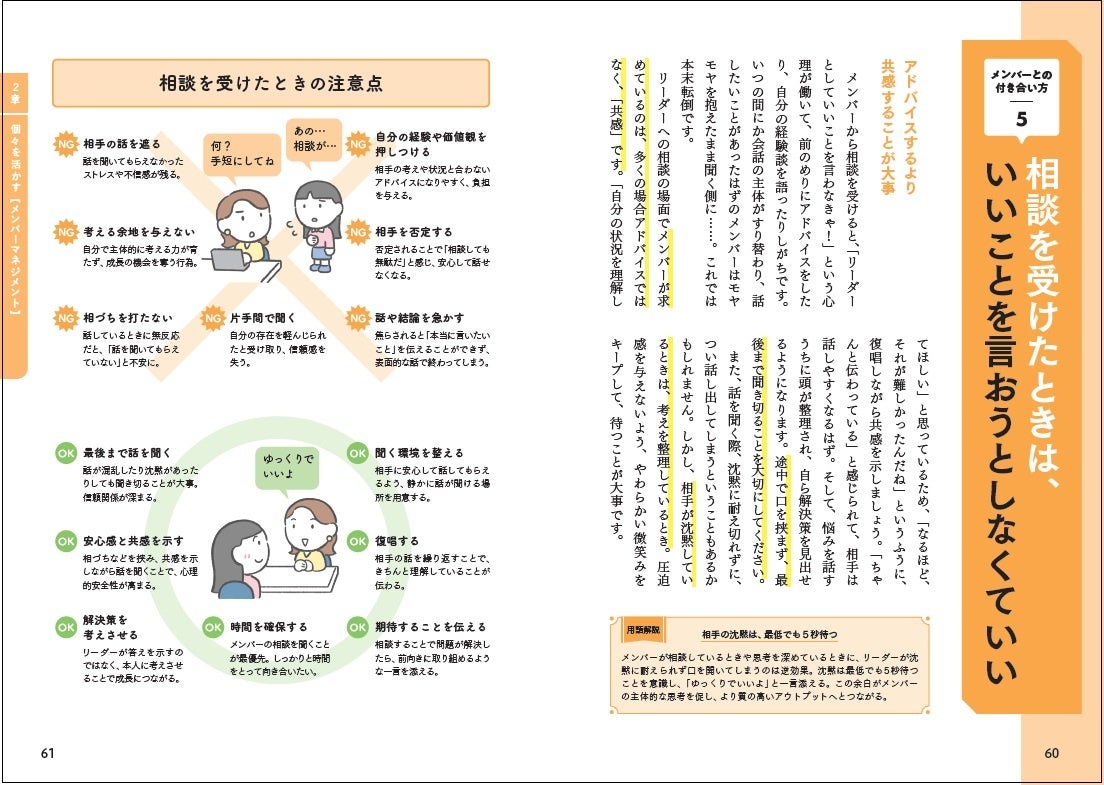 本書の監修は、リクルートやLINEでの人事経験を経て、4,500時間以上の実績を持つプロコーチ・寺田貴哉氏 。リーダーが直面する具体的な悩み(板挟みのつらさ、指導へのためらい等)に対し、コーチが隣で語りかけるような温かく的確なアドバイスが満載です 。