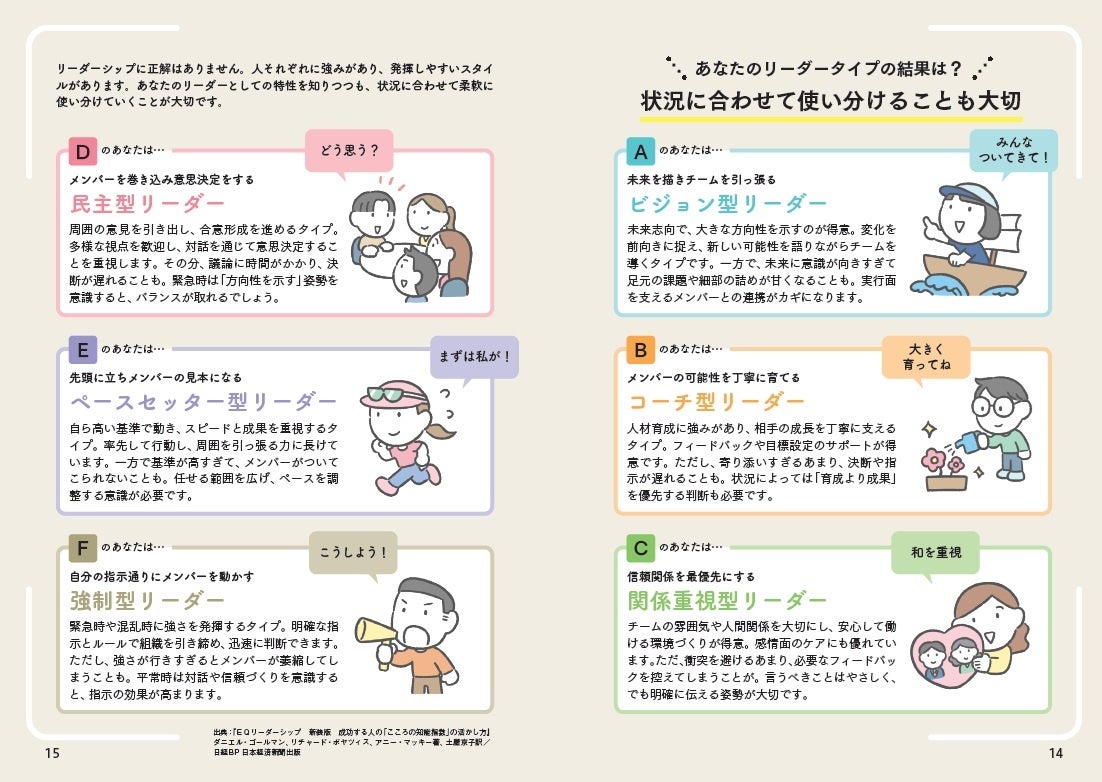 「グイグイ引っ張るカリスマ性がないとリーダーにはなれない」……そんな思い込みは今日で終わりです 。本書掲載の「リーダータイプ診断」では、あなたの特性を「ビジョン型」「コーチ型」「関係重視型」など6つのスタイルで可視化します 。