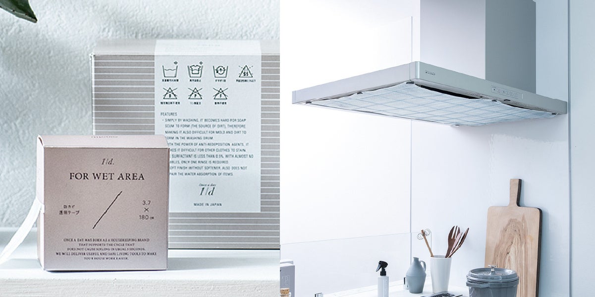 汚れをためない“予防家事®”のフェリシモ「Once a day[ワンス ア デイ]」から定期便で届く「レンジフードフィルター」や透明&折れ線つきの「防カビテープ」が登場