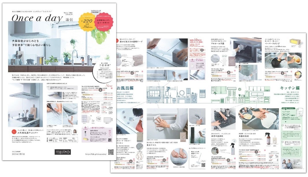 フェリシモが展開する、“予防家事®”を提案するハウスキーピングブランド「Once a day[ワンス ア デイ]」は新アイテムを発表、11月15日よりウェブ販売を行っています。新作は、フェリシモ定期便で届いて取り換えのタイミングを逃さない「レンジフードフィルター」と、透明で目立たず、コーナーにもフィットする折れ線入りの「防カビテープの会」です。色が透明なのでインテリアの邪魔にならずに、後回しにしがちなほこりや汚れを取り除いてくれるアイテムです。新作は、公式サイトのほか、デジタルカタログでもチェックできます。