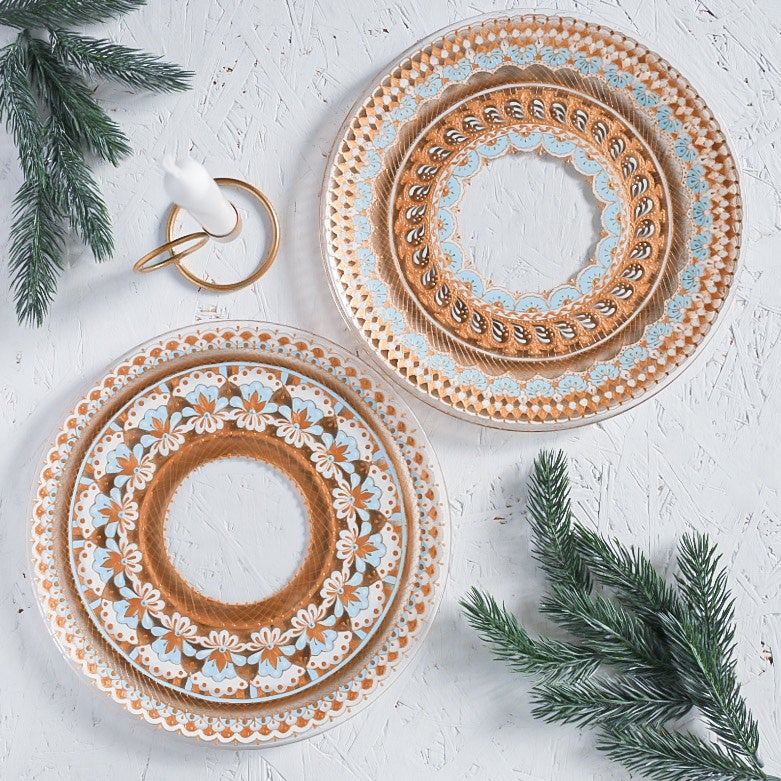 豊かな色彩でガラスに描くアリサ ホリタ>のグラスペイント。 光の加減で様々な表情を見せ、食卓に彩りを与えます。 今回はクリスマスバージョンとして、一点一点オリジナルデザインで絵付けしたクリスマスオーナメントも登場。