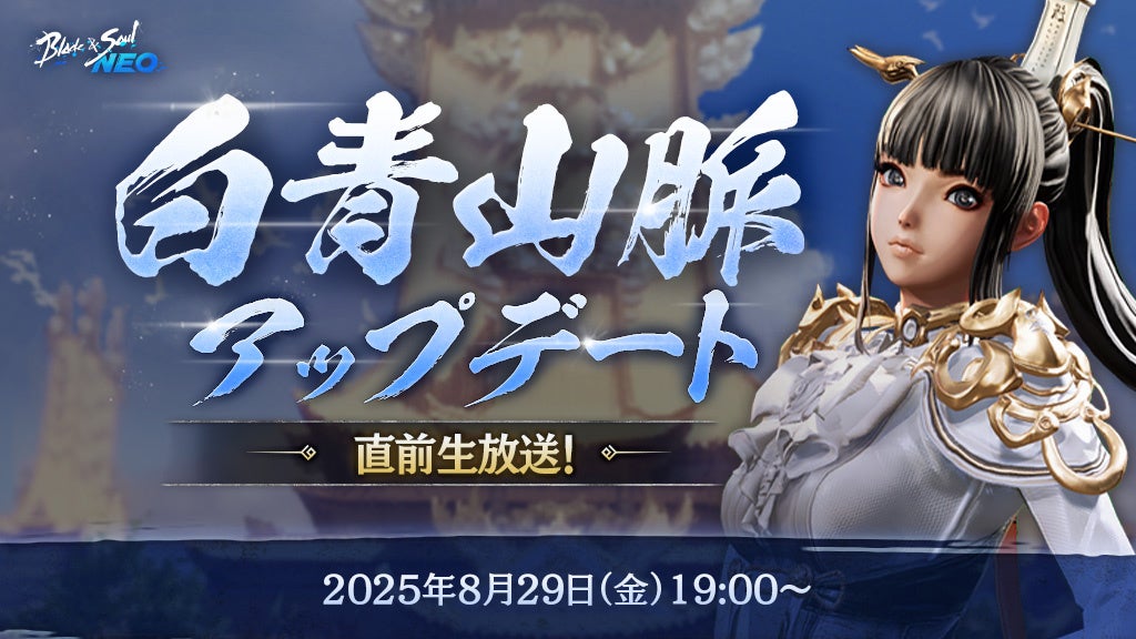 『ブレイドアンドソウルNEO』9月3日に予定している最新アップデートを記念して「白青山脈アップデート直前生放送」が8月29日(金) 19時に放送決定!