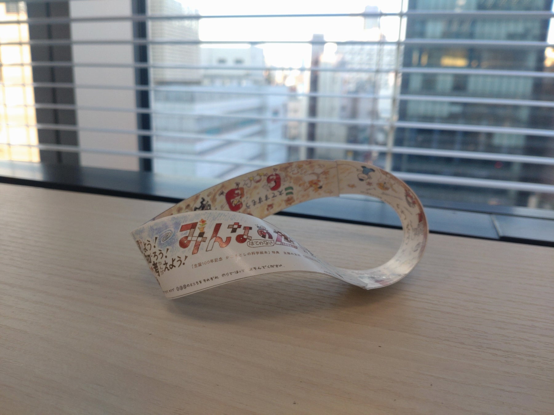 ミュージアムショップ(国立科学博物館 日本館地下1階)での先行販売(2026年3月24日~)では、かこさとし直筆イラストによる「はてのないみんなの世界1984」の工作ペーパー(メビウスの帯*)が1冊に1枚、はさみこまれています。なくなり次第、終了。