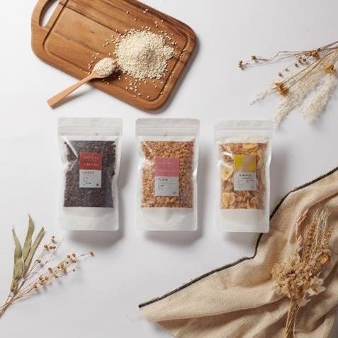 米麹だけで甘味をつけた、グルテンフリー・砂糖不使用のグラノーラです。米麹とオートミールの「発酵×食物繊維」の要素によって、ダブルで腸にアプローチします。7種のフレーバーを展開しており、毎日違ったフレーバーをお楽しみいただけます。