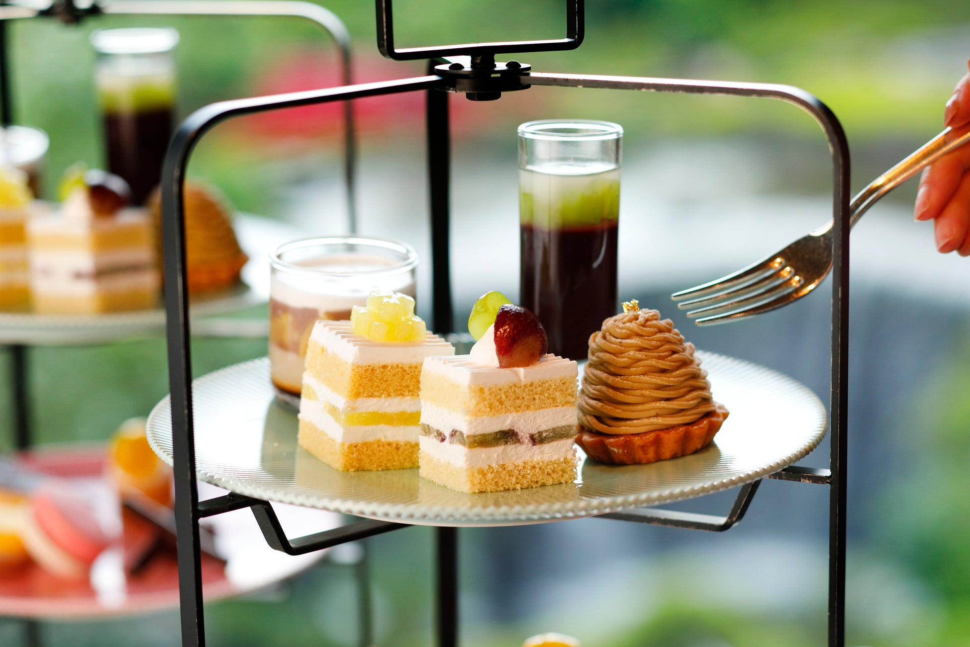 旬のフルーツを使用したホテルメイドスイーツの数々を、江戸時代から400年以上に渡り受け継がれてきた絶景の日本庭園とともに味わえることでご好評いただいている「新アフタヌーンティーセット」。来る秋シーズンには、ミニサイズとなった「スーパーモンブラン」や、「グレープショートケーキ」など、秋の味覚をフルラインアップでお愉しみいただくことができます。眼前に広がる約1万坪の日本庭園が織りなす紅葉とともに、優雅なひとときをお過ごしください。
