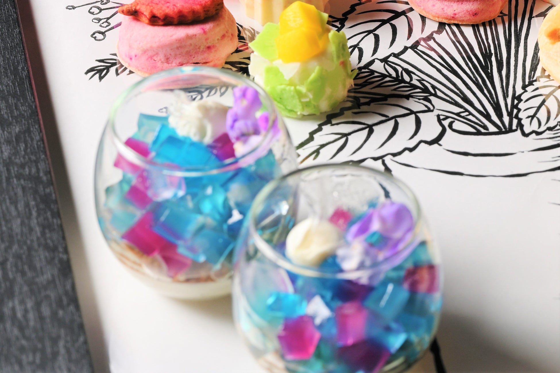 6月から8月の期間、日程限定で販売いたします。季節ごとにメニューがかわるアフタヌーンティーの今回のテーマは、「花」。額縁で供するお花のデザートは、テーブルで完成する「仕掛けのある」アートです。さらに、健康を意識した食材にもこだわりました。夏の野菜をふんだんに使ったセイボリーの盛り付けも色とりどりで、テーブルトップはお花が咲き乱れた絵画のようです。