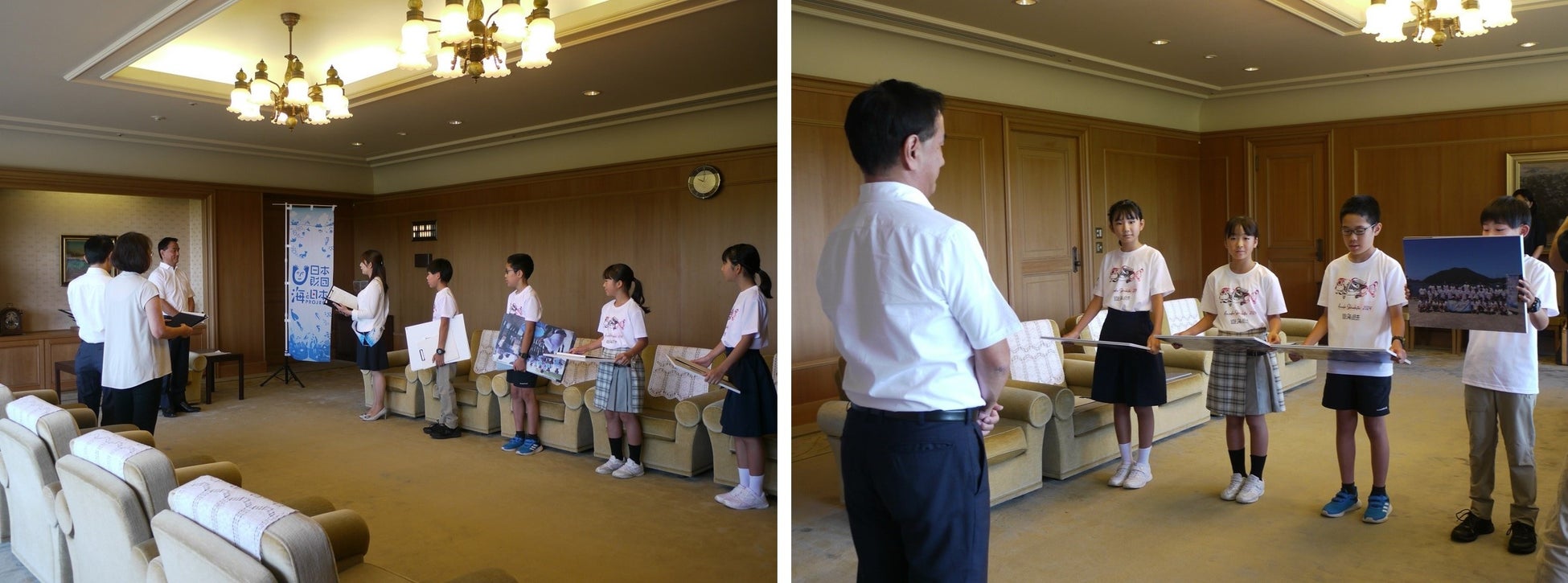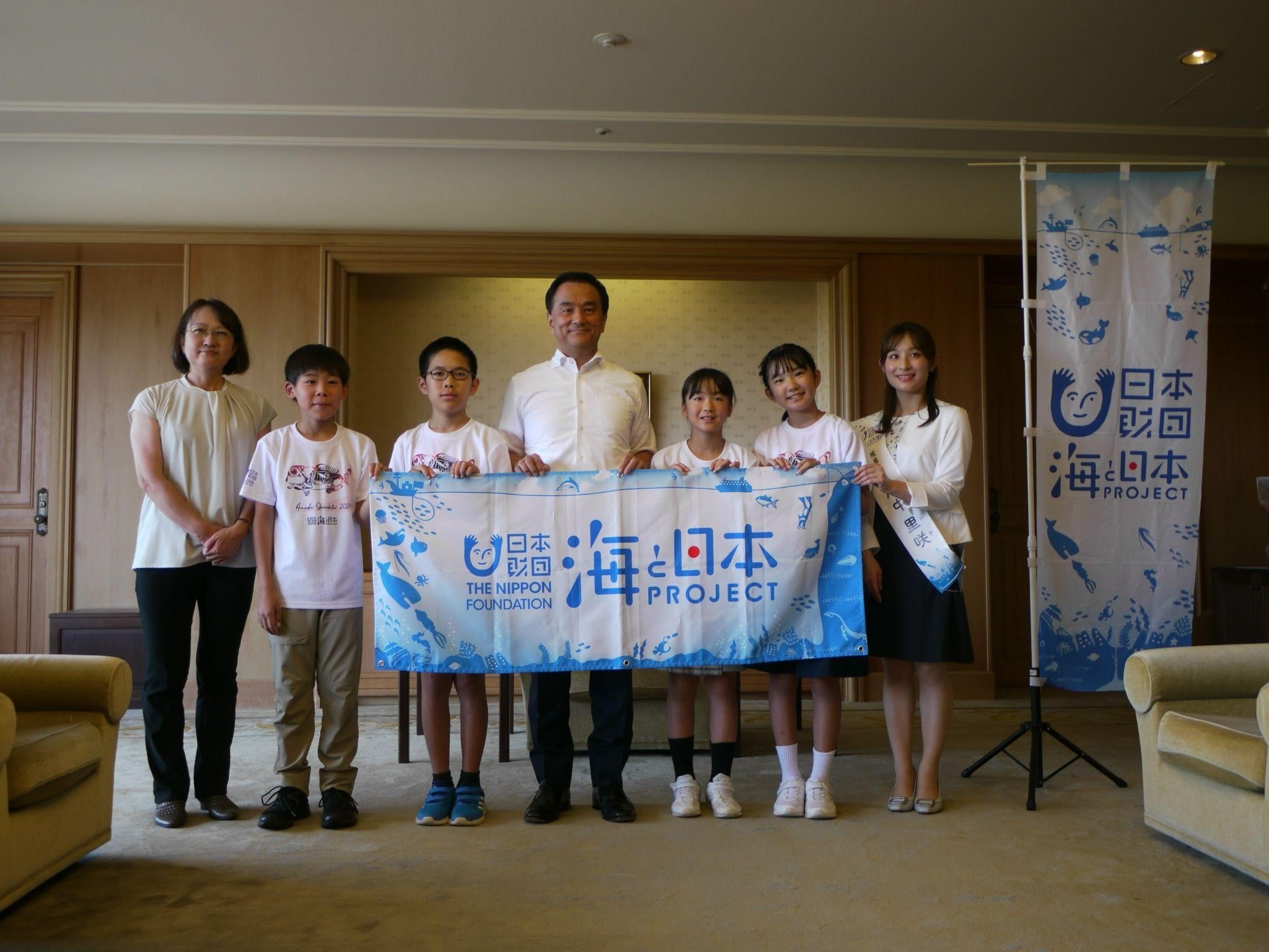 隊員たちは体験の成果をまとめ、2024年8月26日(月)に代表児童4名が山口県庁を訪れ村岡嗣政知事に未来の海を守ることを提言しました。