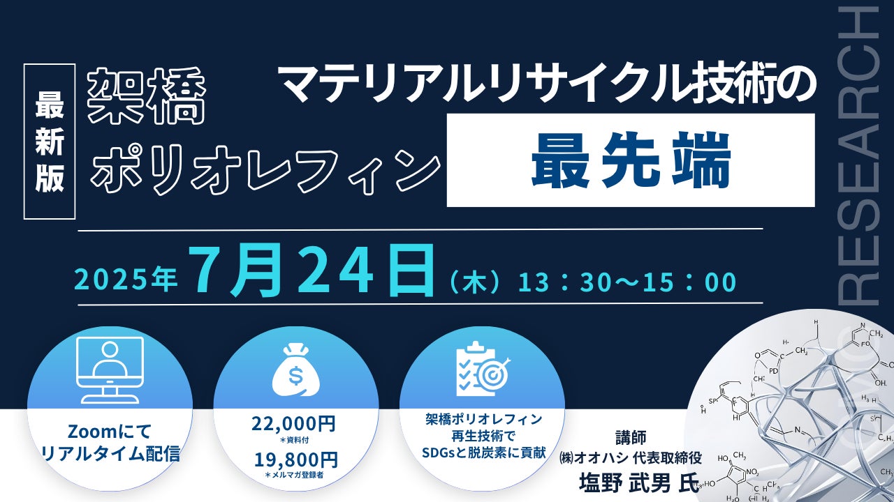 【ライブ配信セミナー】架橋ポリオレフィンのマテリアルリサイクル技術の最先端 7月24日(木)開催 主催:(株)シーエムシー・リサーチ