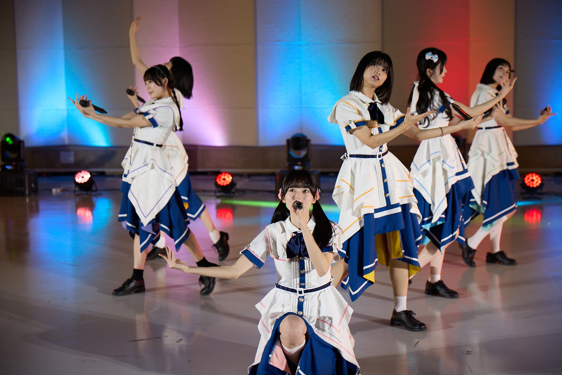 続けて登場したのは、名古屋発の王道系アイドルユニット「君に、胸キュン。」。TikTokをはじめ、SNSでもよく耳にする、YouTubeで277万回再生を達成中の楽曲「恋愛決壊警報」からステージがスタート。彼女たちを初めて見るであろう全国から集まったアイドルファンも、聞いたことのある楽曲だけに自然と客席も熱くなる。新曲「はなまるアニマル」や「シェアラブ」など5曲を披露。キャッチーなメロディーと歌詞で会場をキュンとさせた。