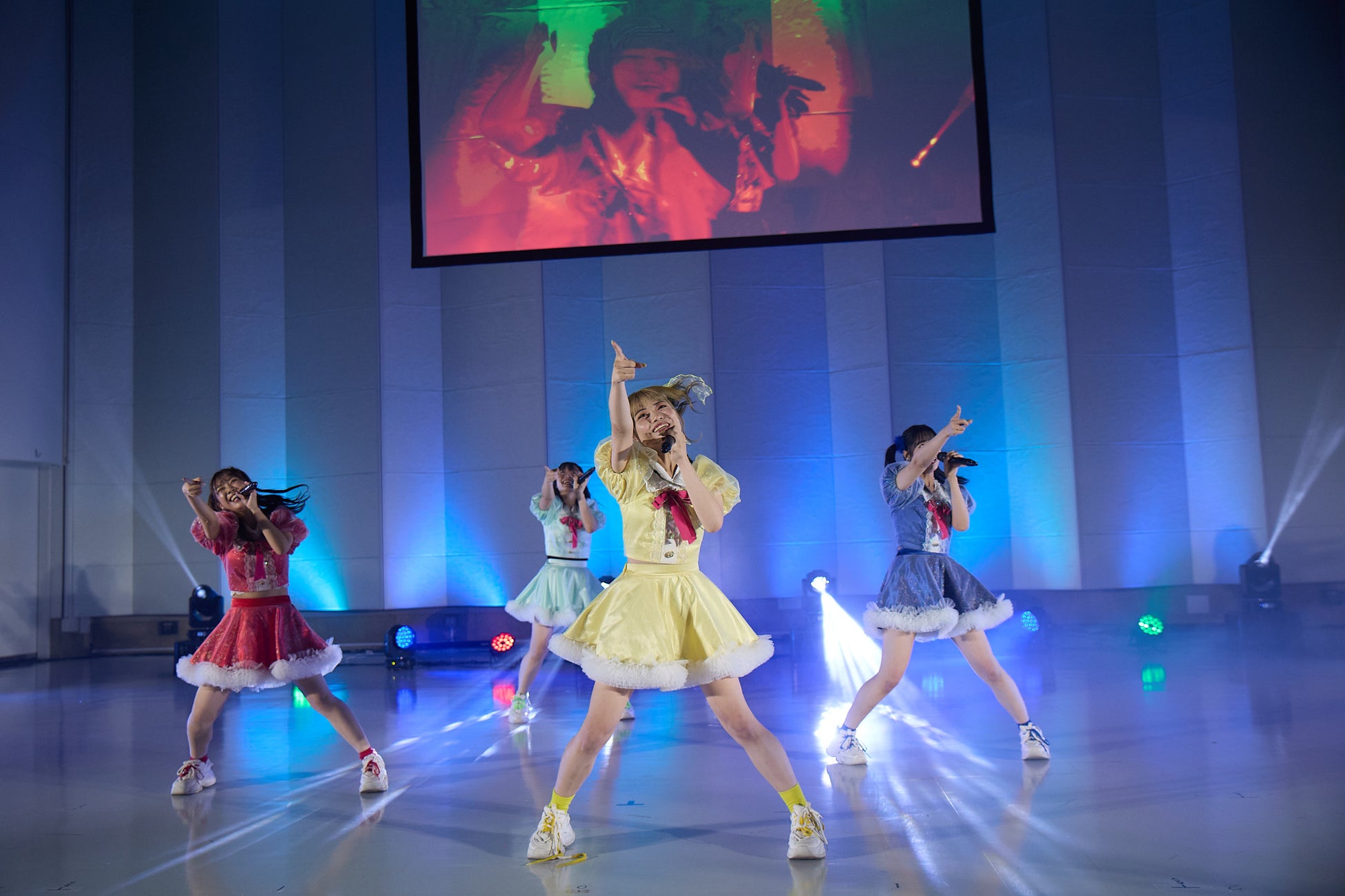 まず初めに登場したのは、「ラジオの魅力」を伝えるため、活動するCBCラジオの番組発ユニット「らじお女子」。この日はラジオ好きなメンバーから4人が登場。毎週水曜日21:00〜CBCラジオで放送中の彼女たちの冠番組「ラジオに恋して」のタイトルにもなっている代表曲「ラジオに恋して」や、「CHANCE」「準未来」など、結成コンセプトやらじお女子の今後を感じさせる5曲で会場を盛り上げた。