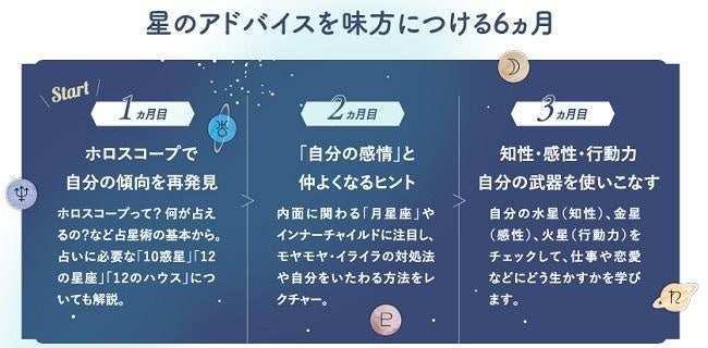 ホロスコープの読み解き方を学び、自分の中の多様な面を知ることで、強みや魅力の生かし方、苦手の対処方法もわかる全6ヵ月のレッスンです。