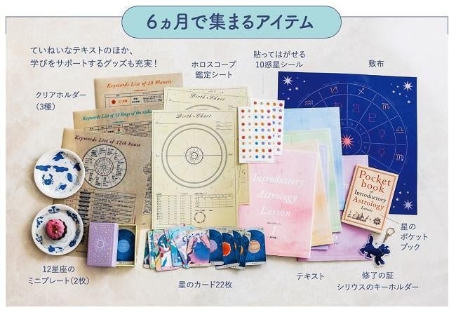 ・セット内容 / テキスト1冊(B5判 24ページ)、ホロスコープ鑑定シート5枚(A4判 1・3・5ヵ月目お届け)、10惑星シールセット(同柄2シート 1・3・5ヵ月目お届け)、星占いお楽しみグッズ(お届けする回により異なります)
