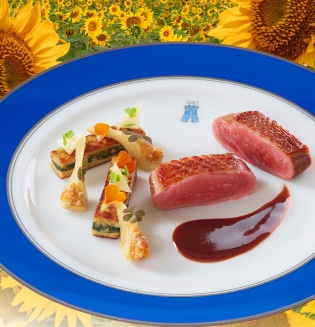2019年フランス料理界最高峰の称号"M.O.F."(フランス国家最優秀職人章)を受章した、エグゼクティブシェフ ルノー・オージエが手掛ける新作のランチ&ディナーコースは、伝統の幼鴨料理はもちろん、晩夏から初秋へ