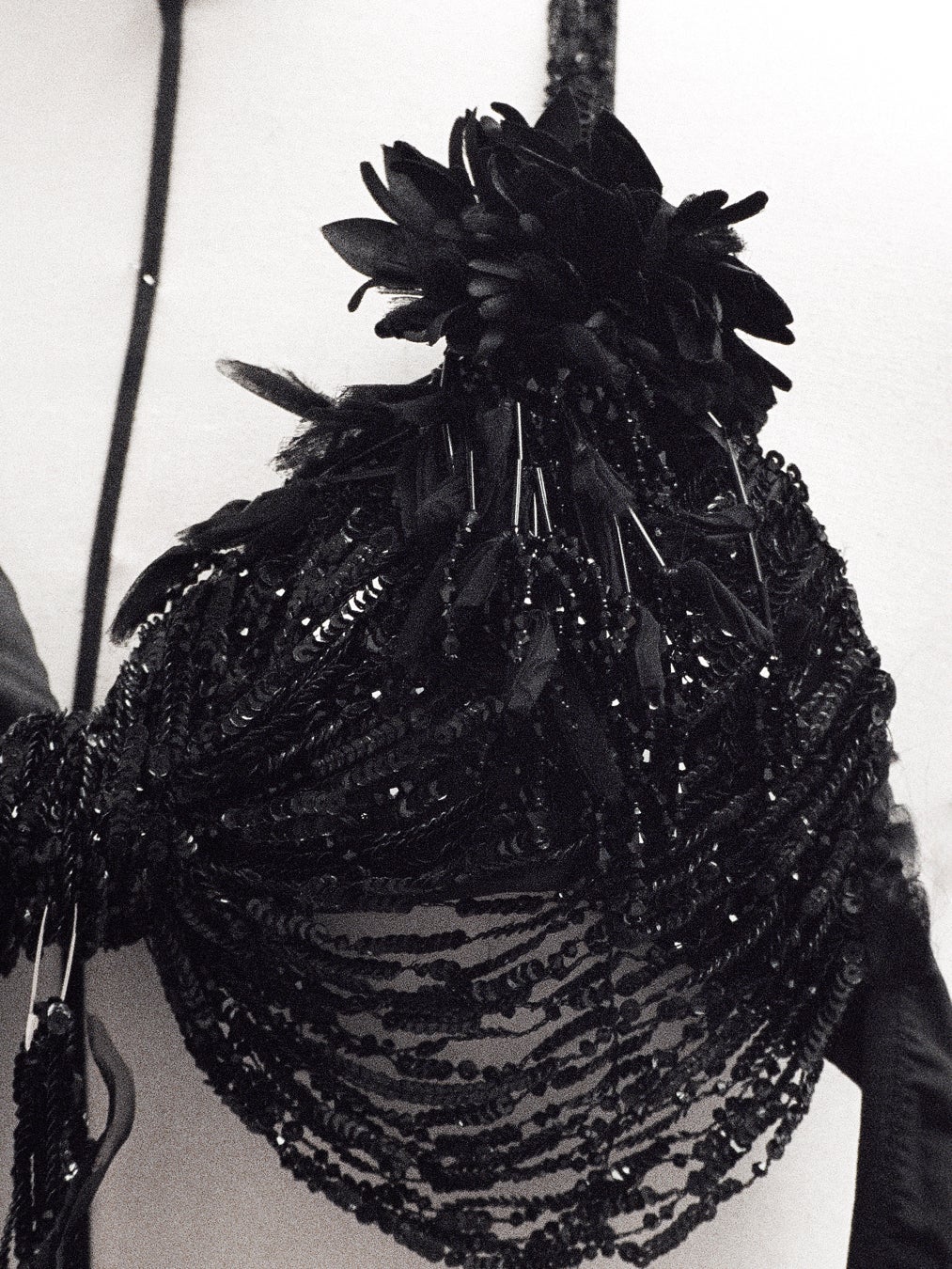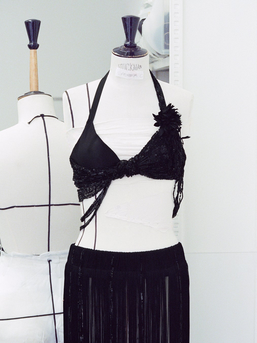刺繍があしらわれたブラックのトップスとフリンジスカートも纏いました。
