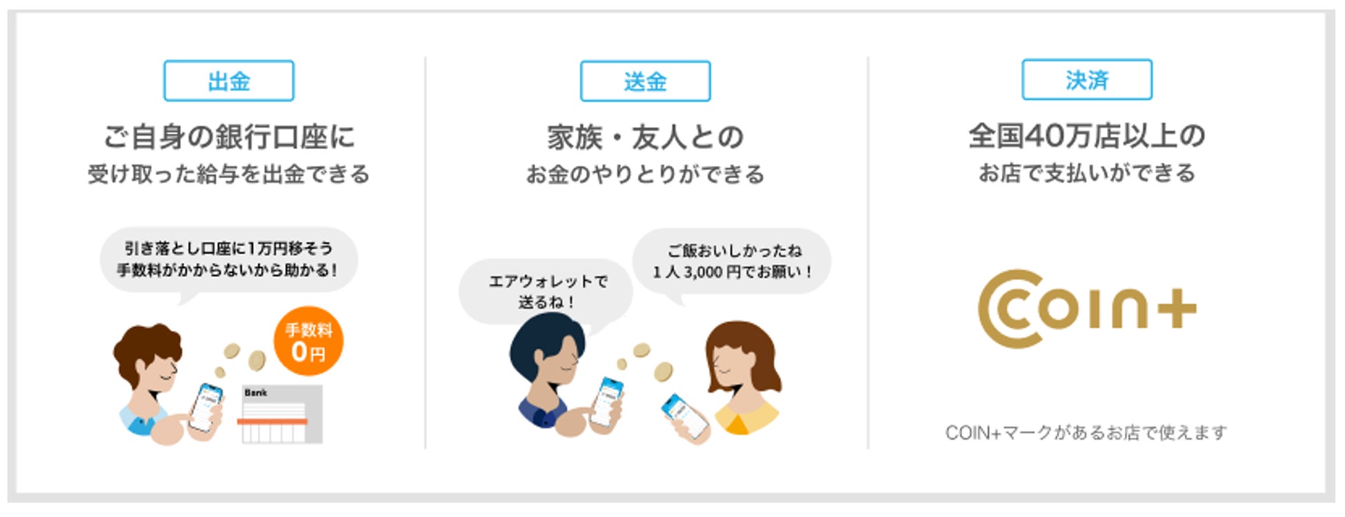 事業内容:送金アプリ『エアウォレット』、決済ブランド『COIN+』の提供