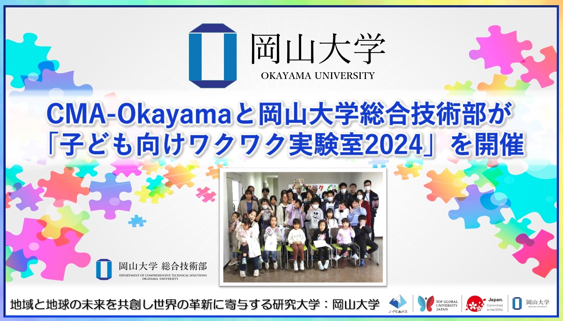 国立大学法人岡山大学(本部:岡山市北区、学長:那須保友)の技術統括管理本部を構成する組織のひとつである総合技術部は、2024年12月8日に鹿田キャンパスの鹿田会館でCMA-Okayama(岡山医療連携推進協議会)とともに「子ども向けワクワク実験室2024」特別ワークショップ(以下、WS)を開催しました。