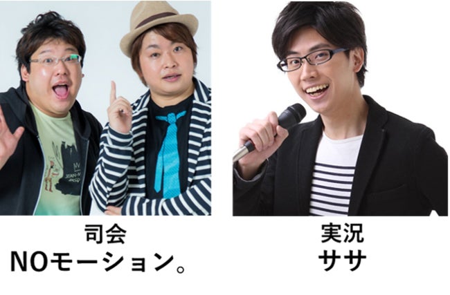 ⼤会当⽇は、「ストIIものまね」でおなじみのNOモーション。さんが司会進⾏を務めます。そして、実況にはeスポーツキャスターのササさんをお迎えします。