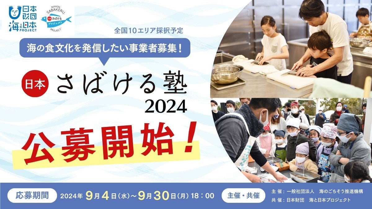 一般社団法人海のごちそう推進機構は、魚を実際にさばくことを入口に「海を味わう十の技法」による調理体験を通じて、地元に伝承される郷土料理、または新たな提案型の郷土料理を作り・学ぶ機会づくりをし、日本の豊かな海の食文化を継承し、輪を広げるプロジェクト「日本さばける塾2024」を実施いたします。そしてこの度、全国から地元の「海の食文化」を発信したい事業者の方々を2024年9月4日(水)より一般公募いたします。