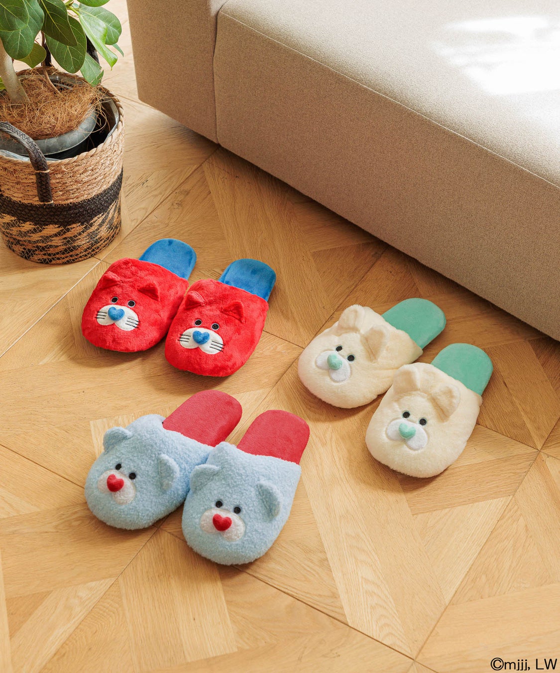 アッパーは毛足のあるファー素材、足入れの部分は毛足の短いファー素材をそれぞれ使い分けて使用することで、履き心地が良く、おうち時間をより快適に過ごしていただけるよう細部までこだわりました。フェイスの鼻部分は立体的なデザインにし、足元にボリュームが出るのも愛らしくて“カワイイ”ポイントです。