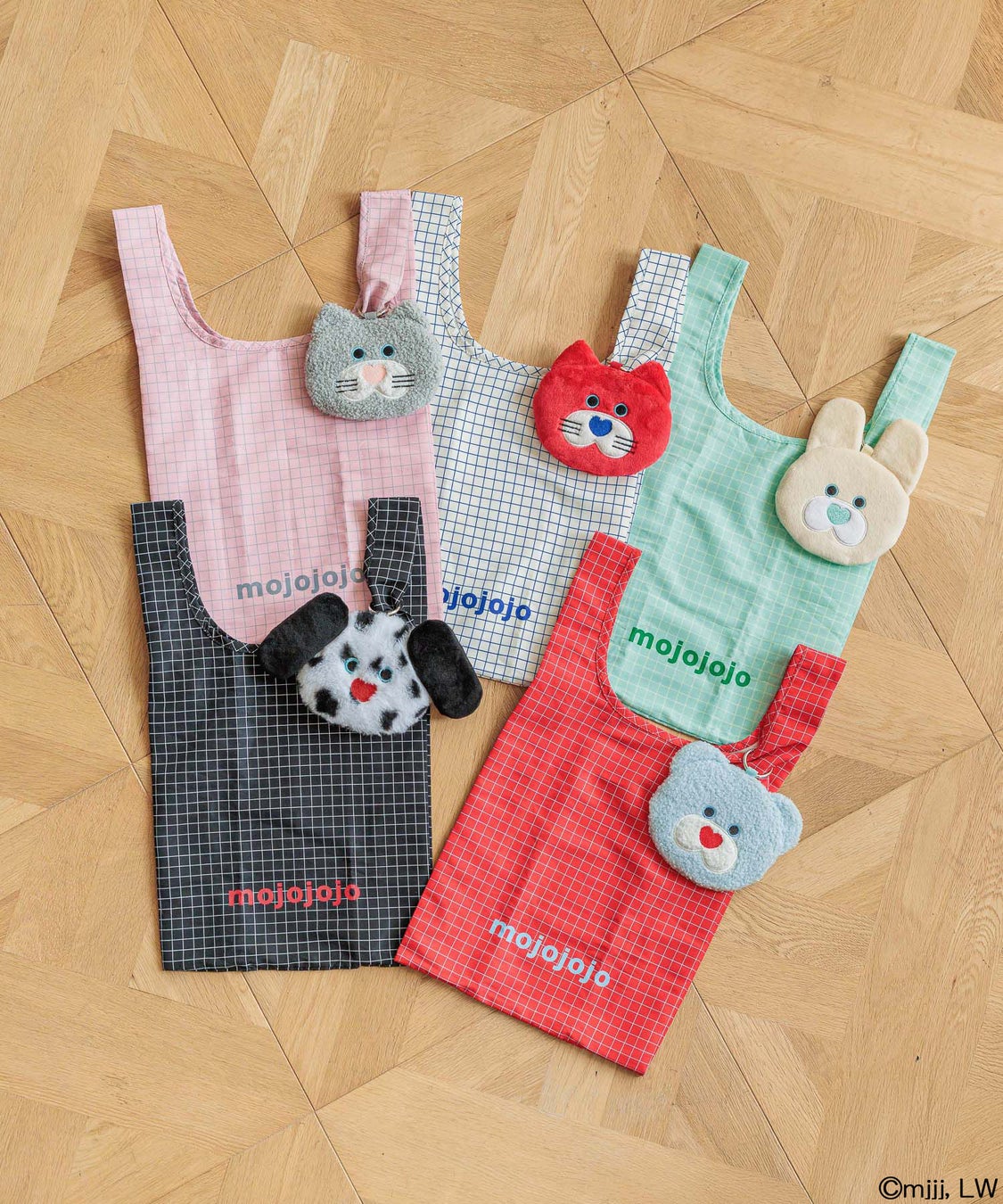 フェイスポーチの中にエコバッグを収納出来るので、フェイスポーチをキーホルダー感覚でバッグに付けて楽しむこともできる実用的なアイテムです。エコバッグは格子の総柄デザインを施しているので、普段使いしやすいのも嬉しいポイントです。
