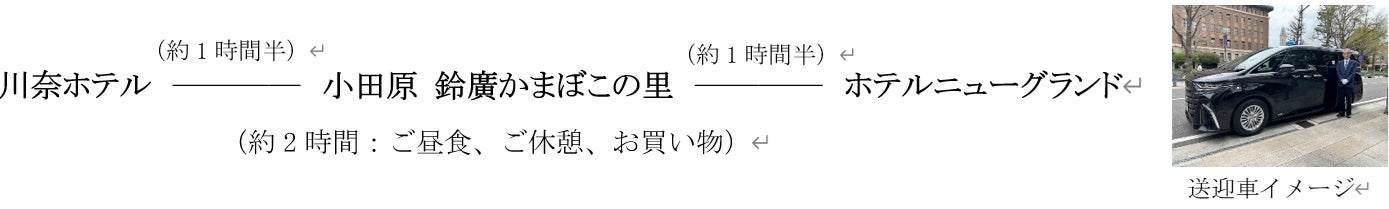 2:30P.M. JR伊東線伊東駅までお車でお迎え(場所:川奈ホテル シャトルバス乗り場/伊東駅改札出口より徒歩1分)