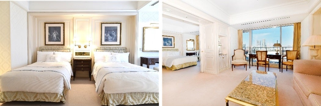 ヨーロピアンエレガンスをコンセプトにした内装と窓に広がる港町横浜の景色をお楽しみいただける優雅な雰囲気の客室をご用意しました。(客室イメージ)
