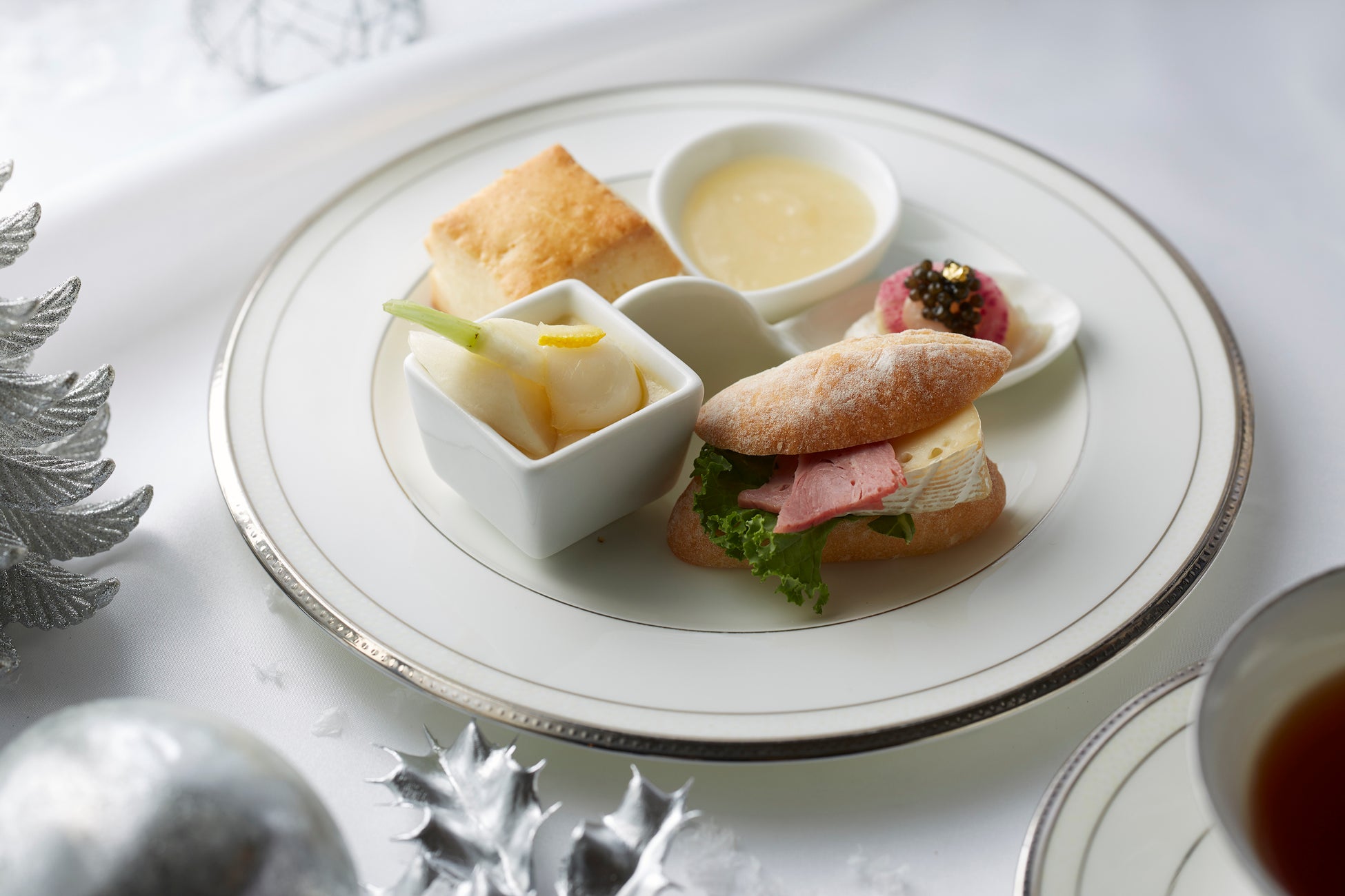 ホテルから見えるお台場のシンボル“レインボーブリッジ”にインスピレーションを受けたアフタヌーンティー。2022年からは「色と色が紡ぐアフタヌーンティー」をコンセプトに2色で展開しています。今回は、美しい冬の銀世界をイメージしたアフタヌーンティーです。