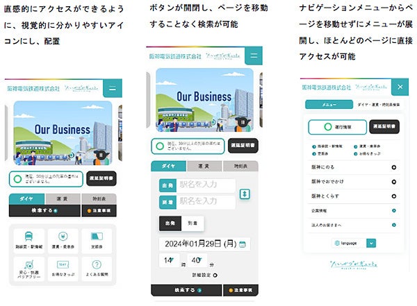 今回のリニューアルでは、「阪神電車のライトユーザーが探している情報に迷わずに辿り着けるサイト」をコンセプトに設計等を行い、利便性を向上させました。