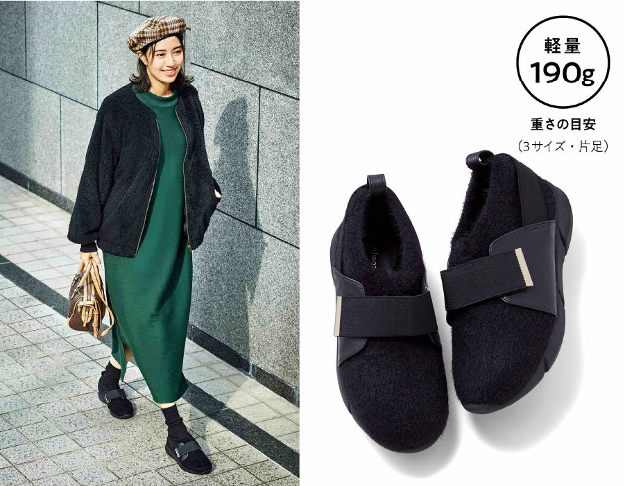 サッと脱ぎ履きできる便利で上品なシャギーニットのスニーカーです。冬のコーデに合うボリューム感のあるデザインなのに、190gと軽量サイズで歩き疲れることなく履くことができます。