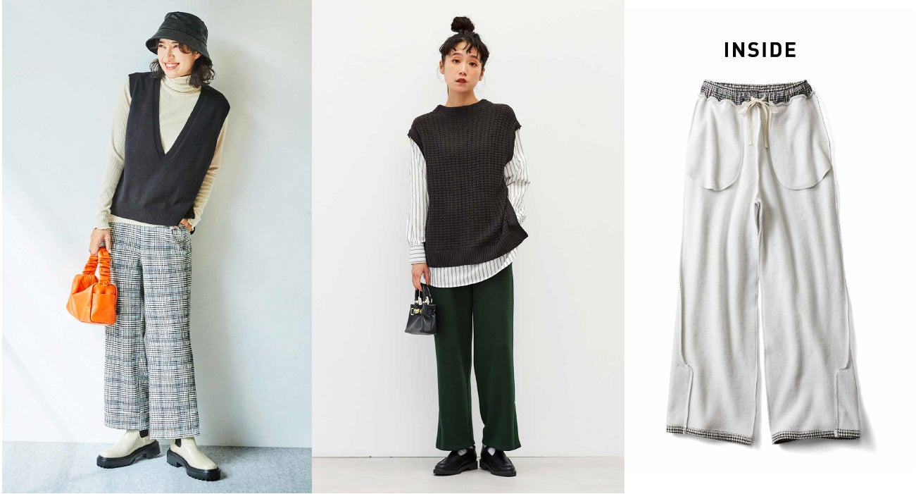 毛布のようなぬくもりと、パジャマ級のらくちんな着心地が特徴の裏シャギーのパンツです。すらっとしたストレートシルエットで脚が長く見えます。すそはベンツ風デザインで抜け感を出すことができます。