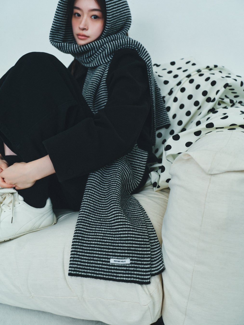 2【HEATHER HOLiC】アソートフトマフラー/¥4,400/サイズ フリー/カラー グレードット/ブラックボーダー