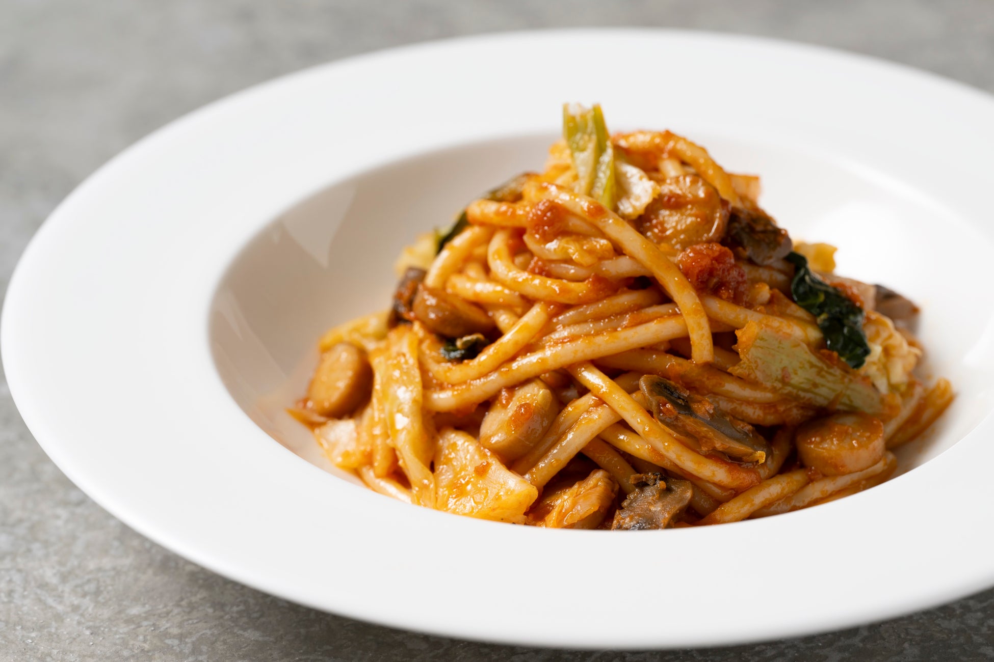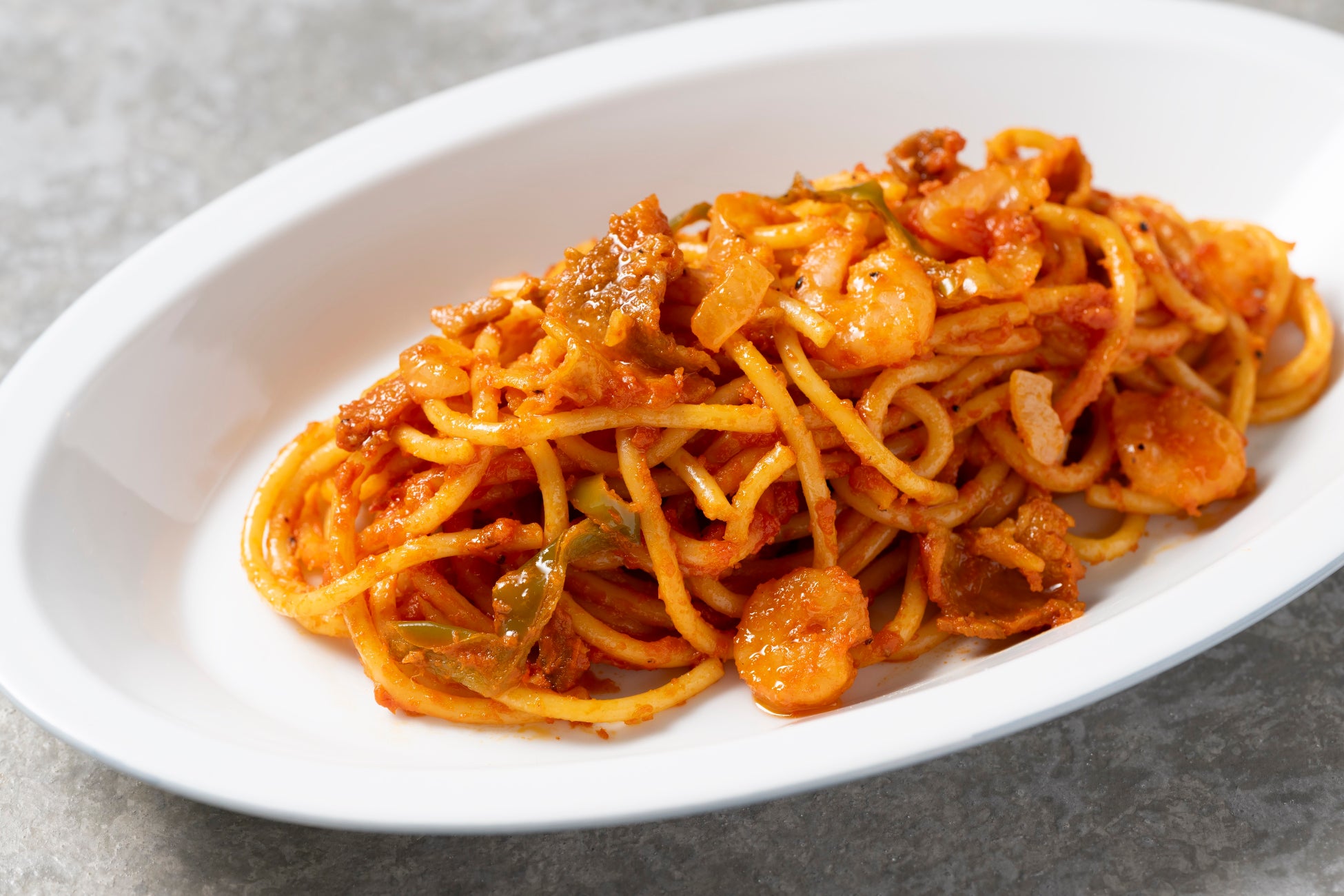 昭和38年創業。首都圏を中心に展開しているラケルの創業当時の味を再現した一皿です。トマトケチャップが太くもちもちとした麺によく絡まり、食べ進めたくなります。また、キャベツ、マッシュルーム、小松菜と具材もしっかり入っており、満足感があります。