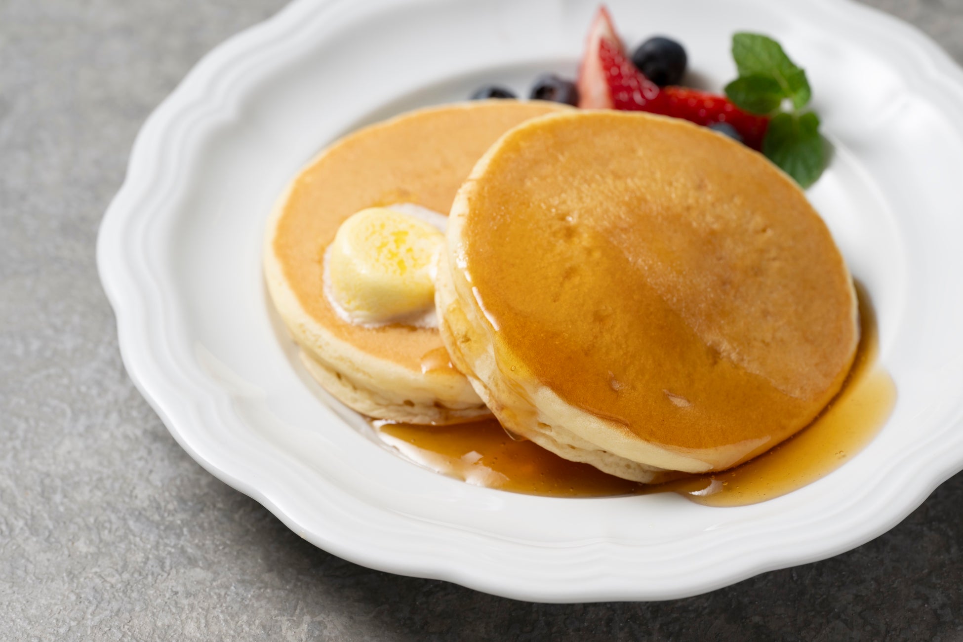 昭和33年創業。北海道産100%の小麦と牛乳を使用しており、温めるとバニラやミルクが香ります。個人的にホットケーキをそれぞれ温めてから2枚(お好みでもう1枚)重ねて、間にホイップバターを挟み、バターがしみ込んだホットケーキに、メープルシロップをたっぷりかけるのが好みです。