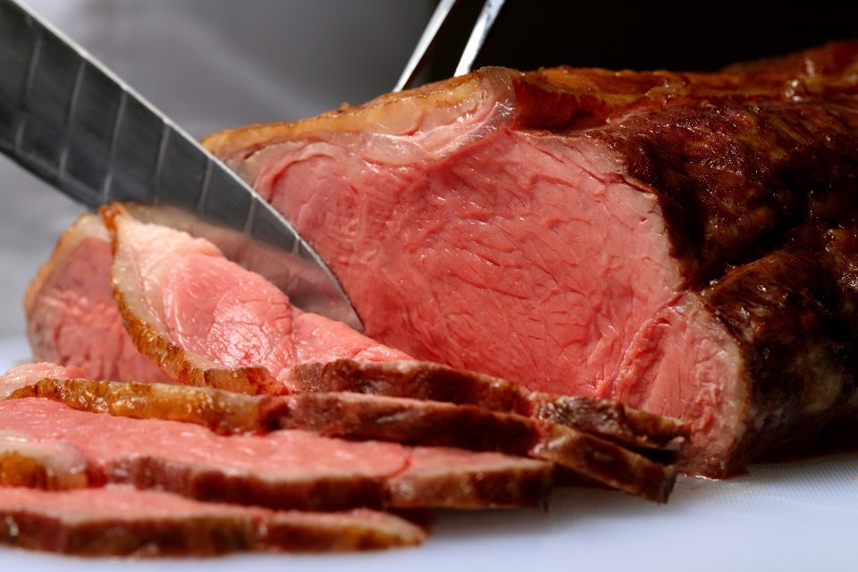 <ライブ キッチンコーナー>低温でゆっくり焼き上げたローストビーフ クリーミーマッシュポテト添え、蒸し蟹 お好みのコンディメントで、“雑煮”オリジナルなスタイルで、新春 握り寿司