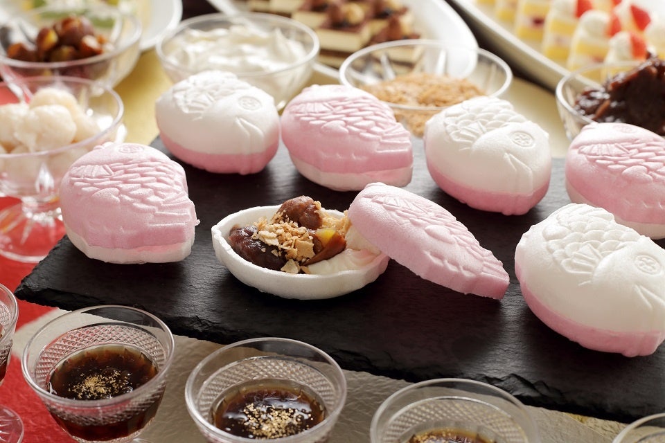 じっくりと低温で焼き上げたローストビーフや、ジューシーで食べ応えのある蟹、人気のネタを揃えた握り寿司、雑煮や栗きんとんなど、新年を祝うのにふさわしい華やかな料理をご用意いたします。デザートには、白玉やあんこ、生クリームなど、お好みの具材を挟んで作る、楽しい紅白もなかをはじめ、パティシエおすすめのスイーツが並びます。