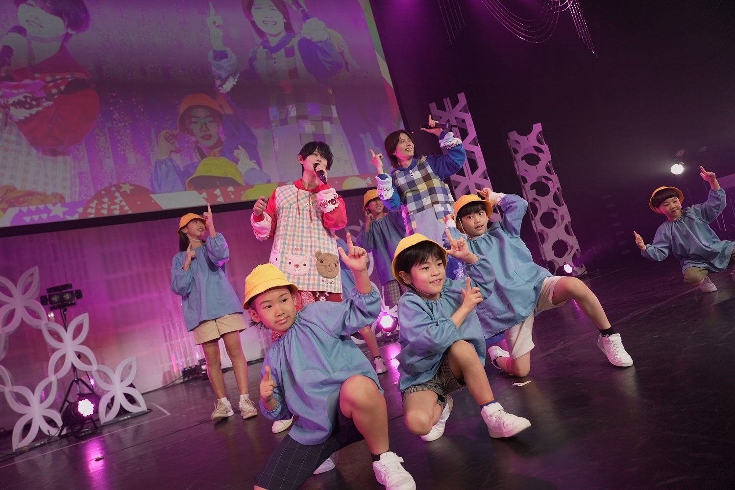 続いて、市川発案による2番目の演出となった「今日も生きててえらいえらい!」がスタート。スクリーン上に市川と四季涼雅が“ダンスのお兄さん”に扮し子どもたちにダンスを教える番組「おにいさんといっしょ」の映像が映し出された。ステージ上でも市川と四季が“ダンスのおにいさん”として登場しており、市川は「会場に小さな友達が来ています!」とキッズダンサーたちを呼び込んだ。しかし、キッズダンサーの中に子どもの衣装を身に着けている“大きなお友達”の椚が混ざっているという演出。椚は衣装の可愛さとギャップがあるソロパートでキレキレのダンスを披露し会場を盛り上げた。