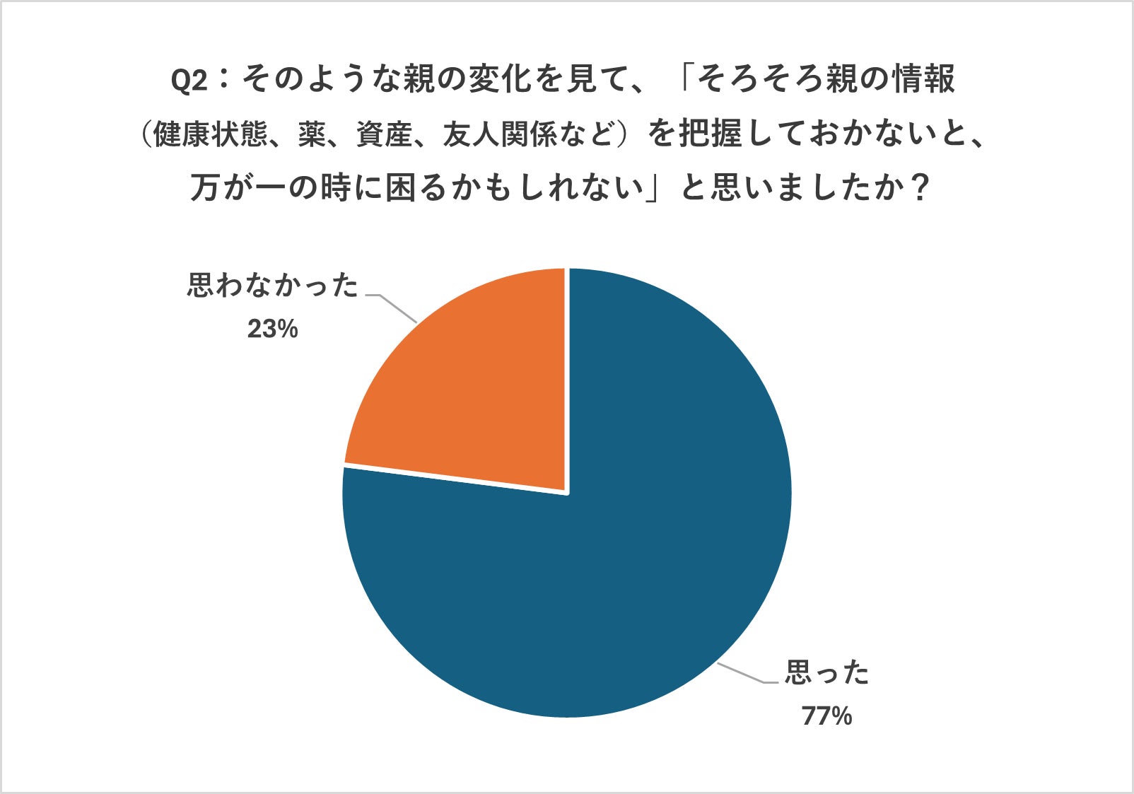 Q2:そのような親の変化を見て、「そろそろ親の情報(健康状態、薬、資産、友人関係など)を把握しておかないと、万が一の時に困るかもしれない」と思いましたか?