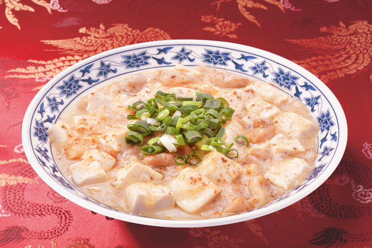 四川料理の専門店として1959年に横浜中華街 に創業した<重慶飯店>。酸(すっぱさ)、麻(しびれ)、苦(にがみ)、鹹(塩み)、辣(辛み)、香(こうばしさ)、甜(甘み)の七つの味を巧みに調理し、微妙なコクや色、香りを引き出す奥深い味に仕上げています。長年愛され続けた王道の系譜を継ぎながらも進化を遂げた”白い”麻婆豆腐。「赤い色は辛いイメージがありすぐに想像出来るが、白い色イコール辛いには結び付かない」そんな驚きを美味しさと共にお届けしたいという遊び心から生まれた、一味違った味わいをお楽しみいただける一品です。鶏挽肉のさっぱりとした旨味に、青山椒の爽やかな香りや痺れが口に広がります。